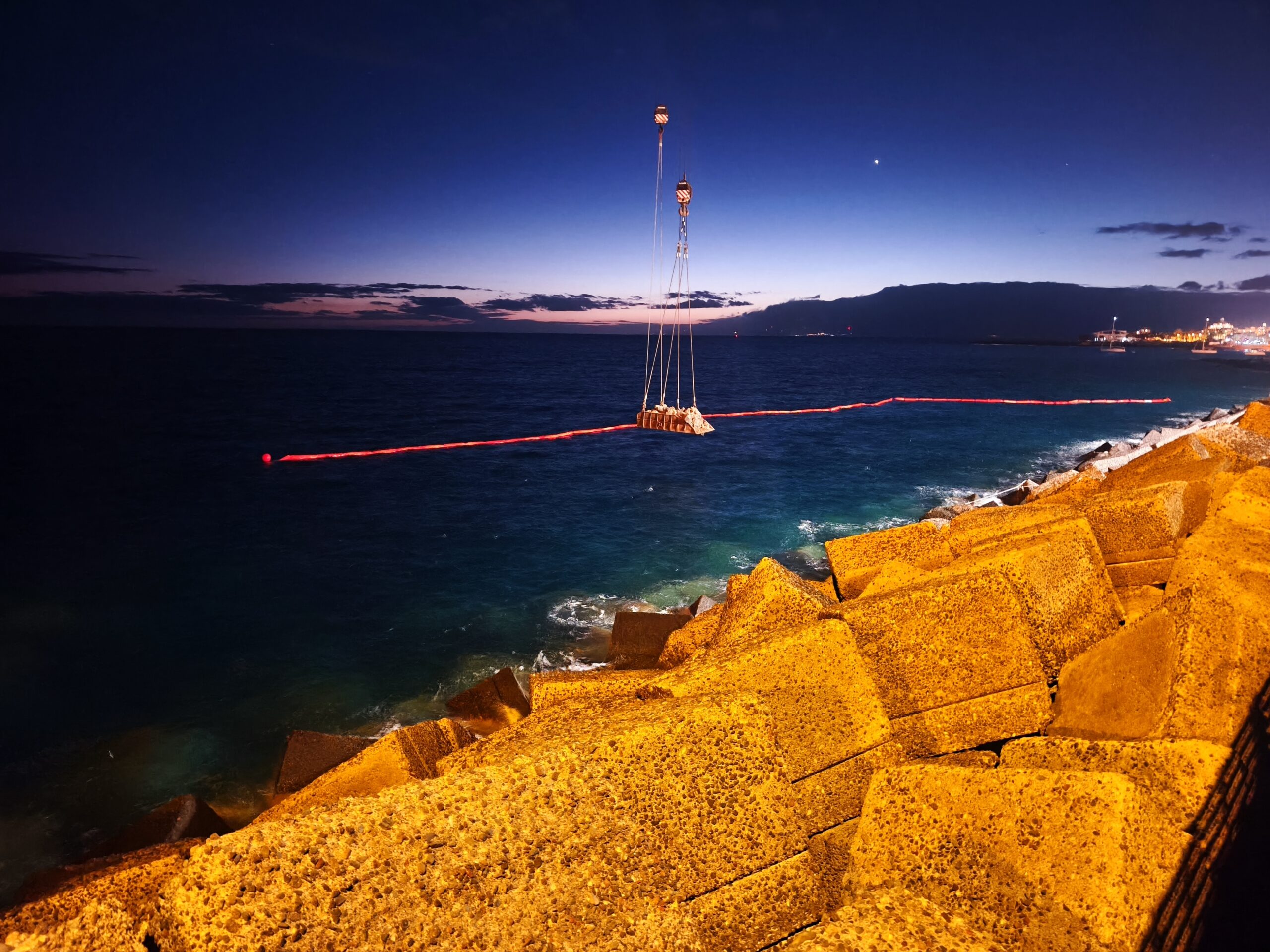 El puerto de Los Cristianos acoge ya la colocación de los bloques de hormigón que reforzarán su dique exterior, una…