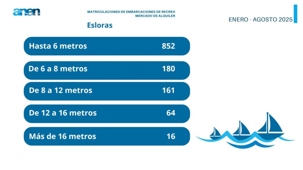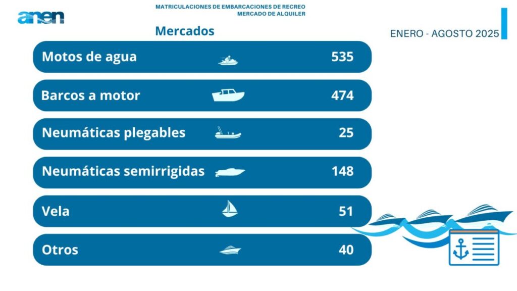 Son los datos que revela el Informe del mercado de embarcaciones de recreo (enero-agosto 2025), editado por ANEN a partir de los registros facilitados por la Dirección General de la Marina Mercante.