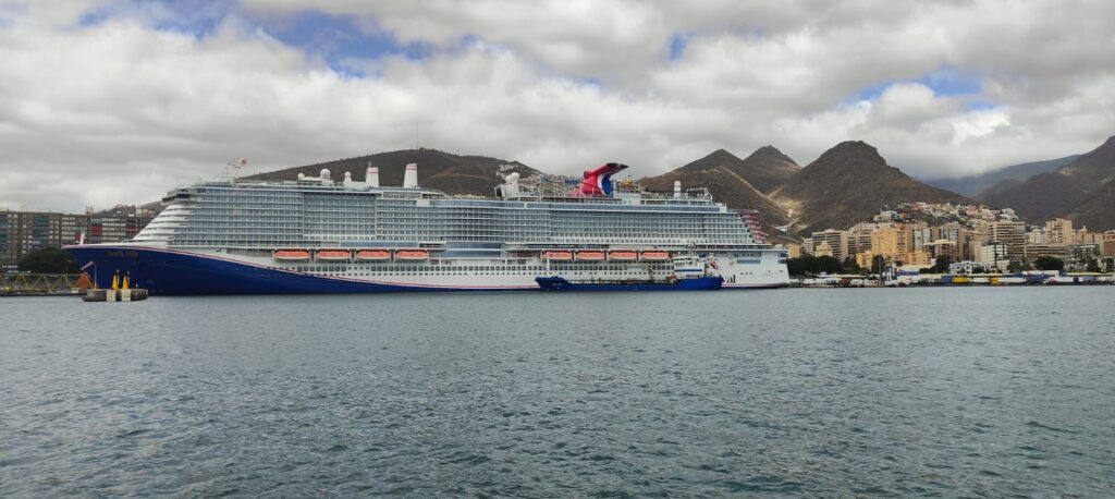 El puerto de Santa Cruz de Tenerife recibió esta mañana en primera visita y escala de posicionamiento proveniente de Bahamas al imponente crucero Mardi Grass con 4.848 pasajeros y 1.791 tripulantes a bordo.
