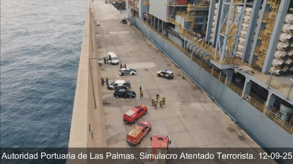 La Autoridad Portuaria de Las Palmas ha llevado a cabo un simulacro de atentado terrorista en el muelle Reina Sofía, sobre la plataforma ENSCO DS-11, con el propósito de evaluar la capacidad de reacción y coordinación de los distintos cuerpos y servicios implicados en la protección portuaria. Este ejercicio se enmarca en el Plan de Protección del Puerto, aprobado en junio de 2025, y responde al objetivo de garantizar la máxima preparación ante escenarios de riesgo.