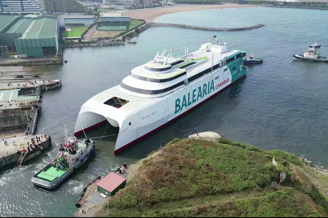 El catamarán tiene capacidad para 1.200 pasajeros y 400 vehículos Baleària botó en los Astilleros Armon de Gijón el fast…